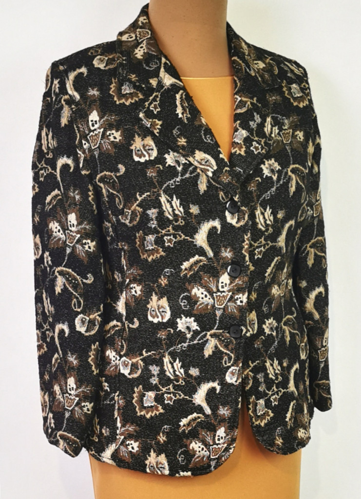 Végig gombos, sötétbarna-világosbarna mintás kiskabát 46-50