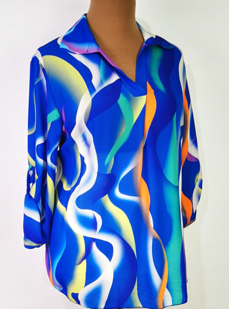 "V", kihajtós nyakú, 3/4-es roll-upos ujjú, kerekített aljú, selymes anyagú felső 2XL/4XL